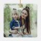 Estes ornamentos de cerâmica quadrada de 2,75" x 2,75" contêm a palavra "Feliz" em uma letra de estilo deco vintage, com ornamentos modernos minimalistas. Adicione seu nome e ano.