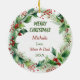 Aqui está um adorável ornamento para uma filha, neta ou sobrinha que é personalizada para ela. A imagem frontal é de um gatinho listrado de tigre felpudo giro vestindo um chapéu de Papai Noel vermelho e branco. O gatinho senta-se dentro de uma bonito coroa de Natal de morango e morango vermelha. A parte de trás do ornamento tem a mesma imagem de coroa com seu texto personalizado em verde e vermelho. Ela vai adorar!