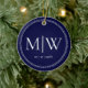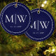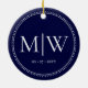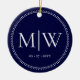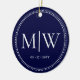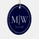 Ornamento De Cerâmica Feriado Azul do Monograma, minimalista nos recém-c
