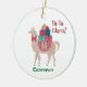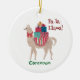 Adicione diversão à sua árvore de natal com este encantador ornamento de Fa La Llama de guarda, apresentando um adorável lama a esboçar um cachecol e presentes de Natal de carregando! Personalize a frente e o verso para fazer disso uma herança realmente memorável, perfeita para se identificar como o doador de presentes ou marcar uma ocasião especial. Com seu charmoso trabalho de arte, puxado à mão, esse ornamento é ideal para quem ama arte animal esperta, fofa, lhamas e alpacas, e um toque de torcida de férias.