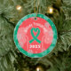 Celebrando o transplante renal! Design original com fita verde de transplante, flocos de neve suaves e símbolo de rim! Personalizar com transplante renal ano/data na frente. Personalize com nomes de doador e receptor na parte traseira! Ideia perfeita de presente para beneficiários e doadores! Feito para o ornamento em forma redonda, de dois lados.