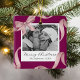 Elegantes ornamentos de Natal de Natal com um fundo de vinho espantoso, com uma peça central de fotos enfeitada por uma bela fita e arco cor-de-água rosa. Preencha com seu nome familiar, o ano e as estações saudam "feliz Natal".