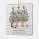 Árvores de Natal russas e luzes de cordas adoram em um fundo de madeira com seu nome familiar, para sua temporada de férias. Estilo de homenagem à terra russa. Feliz Natal com o nome da família. ornamento de metal elegante.