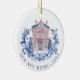 Este Enfeites de natal tem uma casa rosa e azul de dois andares cercada por uma coroa azul úmida e texto que diz "Nossa Nova Casa." Você pode personalizar com um ano.