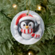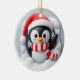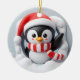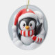 Ornamento De Cerâmica Feriado Pinguim acenando e queimando