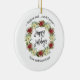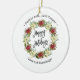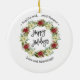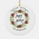 Ornamento De Cerâmica Feriados Felizes Chic Script Poinsettia Monograma