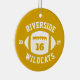 Comemore uma temporada especial com este ornamento de um jogador de futebol. Apresentando um texto personalizável que inclui um nome de equipe ou jogador, número e ano, este Enfeites de natal também tem espaço para uma foto de cheio no verso. Uma forma excelente de celebrar uma temporada vencedora, uma primeira temporada ou uma equipe e jogador favoritos, este presente especial é perfeito para atletas jovens e velhos - desde as ligas de futebol com bandeira juvenil até jogadores de futebol segundo grau ou até mesmo universitários. A cor de fundo é um ouro amarelo por padrão, mas que pode ser alterada clicando em "personalizar mais".