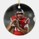 Comemore uma temporada especial com este ornamento de um jogador de futebol. Apresentando um texto personalizável que inclui um nome de equipe ou jogador, número e ano, este Enfeites de natal também tem espaço para uma foto de cheio no verso. Uma forma excelente de celebrar uma temporada vencedora, uma primeira temporada ou uma equipe e jogador favoritos, este presente especial é perfeito para atletas jovens e velhos - desde as ligas de futebol com bandeira juvenil até jogadores de futebol segundo grau ou até mesmo universitários. Por padrão, as cores são verde-claro e branco, mas isso pode ser alterado clicando em "personalizar mais".