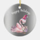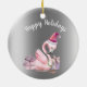 Ornamento De Cerâmica Férias Felizes Flamingo Natal tropical
