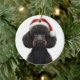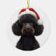 Ornamento De Cerâmica Festive Black Poodle Dog in Santa Hat Illustration