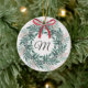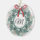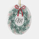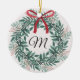 Ornamento De Cerâmica Festive Christmas Wreath Custom Initial and Photo