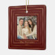 O design moderno apresenta um quadro de ouro múltiplo contra um fundo vermelho de Natal ousado. Personalize facilmente com nome, ano e monograma (atrás). Presente perfeito e guardar para o feriado.