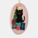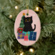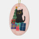 Ornamento De Cerâmica Festivo Rosa Feliz Natal Gato Preto, Café
