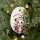 Aqui está um belo ornamento de manutenção para aquela filha especial, sobrinha, ou neta! A frente mostra uma imagem de um adorável pequeno urso panda vestido com seu chapéu e cachecol de inverno. Ele se senta em frente a uma árvore de Natal decorada. O nome do seu filho está em vermelho no canto superior esquerdo. A parte de trás do ornamento tem outra imagem do urso segurando uma flor vermelha cercada, e tem vários campos de texto para você personalizar. Faça-o dizer o que quiser!