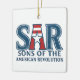 Este ornamento patriótico é o perfeito presente de Natal, estocador, protetor de presente para seu homem favorito que é descendente direto de um patriota da Guerra Revolucionária! Filhos da Revolução Americana, SAR, é uma organização membro para homens que podem rastrear sua linhagem de volta para alguém envolvido na Revolução Americana promovendo a preservação histórica, a educação e o patriotismo. Deus, Casa e País.