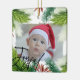 Modern First Christmas Photo ornament. Design features single photo, Christmas greenery, Joyful script on the front. Personalize further with baby's name, birth date and birth stats on the back.