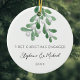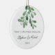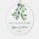 Ornamento De Cerâmica First Christmas Engaged Mistletoe Photo