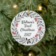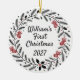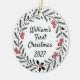 Celebrate a precious milestone with this charming first Christmas photo ornament. Adorned with a festive wreath and tiny stockings, it's perfect for new parents and families. This elegant ceramic decoration adds a heartfelt touch to any holiday tree, commemorating a special year. It's a treasured memento for years to come.