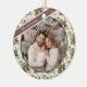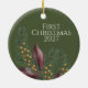 Celebrate a precious milestone with this charming family photo ornament. Adorned with a beautiful watercolor pine and berry border, it perfectly frames your treasured family picture. This festive keepsake is ideal for new parents commemorating their baby's very first Christmas, adding a heartwarming touch to any holiday tree.