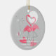 Ornamento De Cerâmica Flamingo Love Texto ornado round