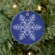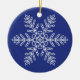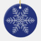 Floco de neve branco sobre ornamento azul de fundo. Uma bela adição à sua árvore de Natal ou decoração de férias!