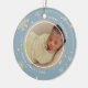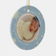 Nesta época de festas, comemore um ano especial com este elegante enfeite de Natal personalizado com foto. Flocos de neve modernos emoldurando sua foto favorita em formato circular com saudações de festas e nome da família, texto do ano curvando em volta. Adicione uma segunda foto no verso.