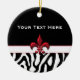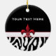Personalize este ornamento vermelho preto da flor de lis da zebra para toda a ocasião ou presente. O ornamento caracteriza um símbolo vermelho da flor de lis do metal do falso em um preto, em um vermelho, e em um design do teste padrão da zebra.