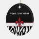 Ornamento De Cerâmica Flor de lis vermelha preta personalizada da zebra