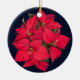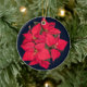 Ornamento De Cerâmica Flor de Natal vermelha em azul