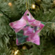 Este ornamento em forma de estrela tem orquídeas rosa de um lado e uma árvore de Natal do outro