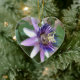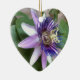 Uma flor exótica da fruta de paixão cresce em uma videira por um curto período de tempo. Esta flor roxa bonita da paixão tem um design incomum que olhe quase como o seu de um outro planeta com suas pétalas brancas purplish leves em uma forma da estrela e profundamente - raio roxo da pétala interna que contrasta o estame amarelo que olha como antenas em uma antena parabólica.