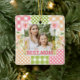 Ornamento De Cerâmica Floral & Plaid Photo Frame Mother's Day