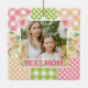 This vibrant “Best Mom” design features a warm mother‑and‑child photo framed by a colourful floral plaid collage. The patchwork border blends gingham, polka dots, and soft pattern blocks in pink, green, orange, and white, accented with illustrated hibiscus flowers and golden botanical elements. The mix of textures creates a bright, handcrafted feel with a joyful, heartfelt mood. Perfect for Mother’s Day, birthdays, or celebrating a truly special mum, this design pairs sentiment with bold, modern colour and floral charm.