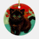Ornamento com um gato preto e flores vermelhas no estilo Van Gogh! Este gatinho bonito é adoravelmente apresentado com flores vermelhas. Um presente fabuloso para amantes de gatos e colecionadores de arte holandeses!