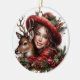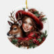 Ornamento De Cerâmica Floresta de Feriado Holly Girl & Deer