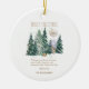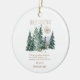 Encontre este maravilhosamente trabalhado Ornamento Feliz de Natal em aquarela apresentando uma floresta nevada com descendentes de veados. Este Encomenda de Feriados pode ser personalizado com o Nome da Família/Empresa e desejos de feriado. Por favor, personalize o Ornamento para que goste da frente e do verso.