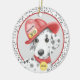 Comemorem o Natal dos seus futuros bombeiros com este adorável adorável adorável ornamento personalizado de filhotes de cachorrinhos dalmacianos! Adicione o ano atual e o nome do seu filho clicando em "personalizar este modelo". Este ornamento super fofo apresenta uma ilustração feita a aquarela pintada manualmente de um filhote dalmata vestindo um capacete de combate a incêndios. Você pode adicionar a foto do seu filho ou bebê nas costas! Excelente guardando ornamento para bebês e crianças!