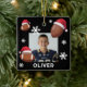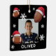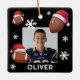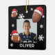 American Football Ball Santa Hat Name Photo Christmas Ceramic Ornament. Fun football ball with a red Santa hat, custom name and a photo. Featuring festive football design wearing Santa hat, these customizable ornament brings sporty cheer to your tree, wrapping, and gift list.