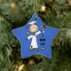 Uma figura masculina em um boné branco e vestido de fundo azul tem um diploma e o texto diz "Eu fiz!" sobre T-shirts de graduação, bolsas, botões, cartões, autocolantes, chaveiros e outros artigos! Você pode adicionar seu nome, nome da escola, ano atual, e outro texto na parte de trás deste ornamento de formando de keepsasawn para personalizá-lo!