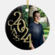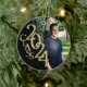 Os formandos vão adorar este ornamento personalizado de fotos de feriado disponível nas suas próprias cores escolares Este ornamento de fotos "Classe 2024" em ouro e preto pode ser personalizado com um nome e texto no verso ou adicionar outra foto.