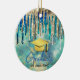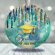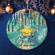 A turquesa de ouro azul-quico goteja o ornamento cerâmico do formando. Ornamento de graduação brilhante para um segundo grau ou formando universitário. Monograma deste belo presente com o seu nome de mais velho personalizado e a sua classe no centro.Um presente de Enfeites de natal perfeito para o formando de classe deste ano com um chapéu de graduação de quadro de retórica. Ps: não há brilho real ou parte levantada, é um belo design impresso.