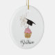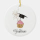 Pegue este ornamento para sua filha e seus amigos. Personalize com o ano de graduação e a escola. Este cupcake de graduação cor-de-rosa com formando em script de rico pode ser encontrado em minha loja, PageCreativeDesigns.
