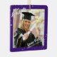 Este estilo comemorativo de manutenção do ornamento cerâmico mostrado mostra duas fotos do formando...um na frente com seu nome, escola e ano de graduação em uma fonte de script de pincel com uma borda EDITABLE PURPLE e estrelas mutadas na frente e uma foto sangrada de cheio no verso com o título CLASSE DE "ANO". O estilo/cor/tamanho/posicionamento da fonte pode ser alterado na parte frontal e traseira. Exclua qualquer texto de exemplo não desejado. Observe que outros estilos de ornamento podem não oferecer impressão no verso. DICA FOTO/IMAGEM: Escolha uma foto com o assunto no meio e/ou pré-recorte a foto em forma quadrada ANTES de carregar. ASSISTÊNCIA: Para obter ajuda com a modificação/personalização do design ou a transferência do design para outro produto, entre em contato com o designer ANTES DE ENCOMENDAR por meio do Zazzle Chat ou makeitaboutyoustore@gmail.com.
