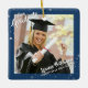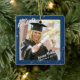 Este estilo comemorativo de guarnição de manutenção mostrado mostra duas fotos do formando...um na frente com seu nome, escola e ano de graduação em uma fonte de script de pincel com uma borda EDITABLE BLUE e estrelas amassadas na frente e uma foto de sangria de cheio no verso com o título CLASSE OF YEAR. O estilo/cor/tamanho/posicionamento da fonte pode ser alterado. Exclua qualquer texto de exemplo não desejado. Observe que outros estilos de ornamento podem não oferecer impressão no verso. DICA FOTO/IMAGEM: para obter resultados mais rápidos/melhores, escolha uma foto com o assunto no meio e/ou pré-recorte a foto em forma quadrada ANTES de carregar. Entre em contato com o designer se quiser que o design seja modificado ou em outro produto.