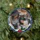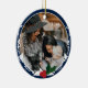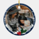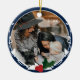Um Enfeites de natal fotográfico com um esquema de cores azul e branco e uma decoração de bagas e folhas sagradas. Basta adicionar sua foto e o ano, adicionar este ornamento ao seu carrinho, e ter um maravilhoso Natal. Design de Feriado de Natal Holly Cerâmica de Férias no Natal | ©Melissa Patton - Designer