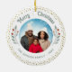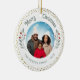 Ornamento De Cerâmica Foto da família de Natal Foliage Glitter