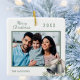 Personalize e adicione sua própria foto de família. Um quadro verde decorado com o decor clássico dos sinos de Natal. Adicione seu nome de família e ano.