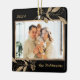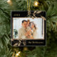 Ornamento De Cerâmica Foto da família Dourada Leaves no Natal Negro