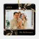 Caligrafia Elegante Moderna Colagem de Fotos Preta e Dourada da Família Feliz Roteiro de Natal Cerâmico. Este folheto festivo Ornament apresenta uma bonito folha de ouro botânico, falsa, com bagas, nome da família e ano em ouro sobre fundo preto. Boa manutenção para sua família e amigos na época de Natal.