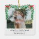 Ornamento De Cerâmica Foto da Família Feliz de Natal do Arco Moderno
